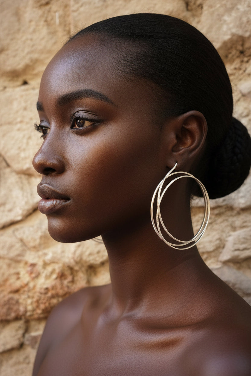 Aros triples de alpacar hechos a mano. Tienen una textura que va del pulido, pasando por el mate hasta terminar en una zona grabada que le da un contraste muy bonito. Como están realizados artesanalmente siempre hay alguna diferencia, de manera que tus pendientes serán únicos.
